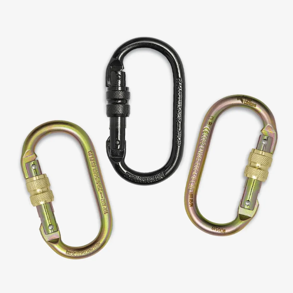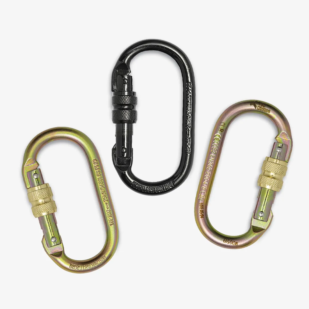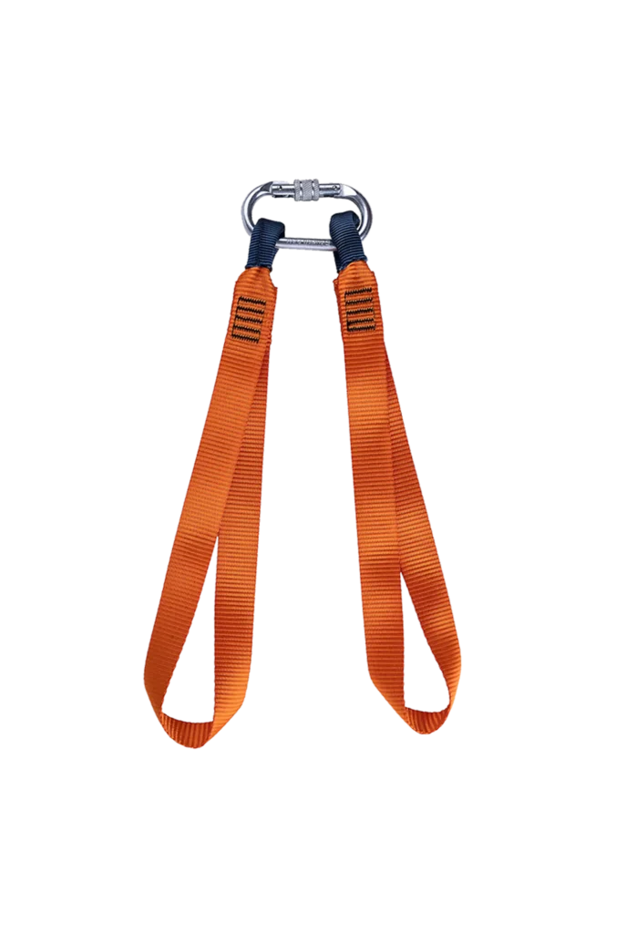 Modelo em aço carbono, indicado para corda de poliamida 12 mm. Acompanha extensor em fita de poliéster 25 mm e conector classe T em aço.